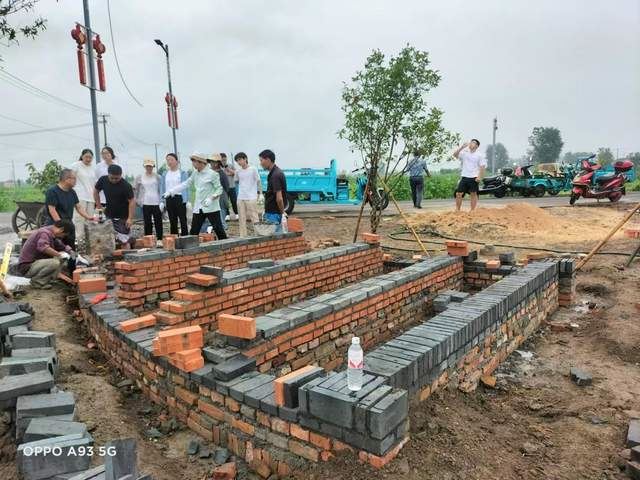 一道道砖“梁”,在瓦刀与砖块的碰撞声中拉长、增高……8月28日上午,在兴化市沙沟镇仲寨北村村民公园的一方地块上,状如半条“舟”形的“石韵地坛香”小品诞生。小品由船外邦、四道“梁”构成。