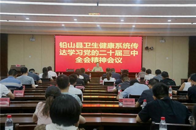 8月8日下午,铅山县卫生健康系统在县行政服务中心206会议室召开会议,专题传达学习党的二十届三中全会精神。县卫健委党组书记、主任王丽芳主持会议并讲话。