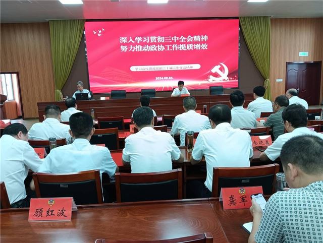深入学习全会精神。一是全面系统学。蕲春县政协组织全体政协委员,把学习贯彻党的二十届三中全会精神,作为当前和今后一个时期的首要政治任务,积极参加各类专题学习活动,认真研读全会文件和重要讲话,深刻领会精神实质,准确把握核心要义,把全会精神学深吃透。二是原原本本学。通过集中学习、个人自学、专题研讨等多种形式,逐字逐句地研读,深入思考其中蕴含的重大理论和实践问题,不断加深对全会精神的理解和认识,在学思践悟、细照笃行中坚定信念信心,凝聚广泛共识,激发奋进动力。三是全员覆盖学。深入开展全方位、多层次学习活动,组织引导全县政协组织和政协委员把思想和行动统一到党的二十届三中全会决策部署上来,统一到省市县委的工作要求上来,胸怀“国之大者”、心系“民之关切”的担当,积极建言资政、履职尽责,在推进中国式现代化蕲春实践中贡献智慧和力量。