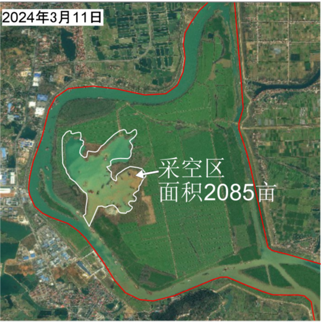督察组查询卫星影像显示,澧水河口湿地保护区孟姜垸洲滩被大面积采挖。(督察组供图)