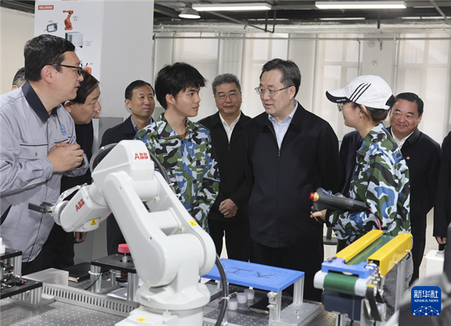 5月7日至9日,中共中央政治局常委、国务院副总理丁薛祥在辽宁大连、沈阳调研,并在沈阳主持召开座谈会。这是5月7日,丁薛祥在大连理工大学调研高校科技创新、人才培养、毕业生就业等情况。新华社记者 刘卫兵 摄