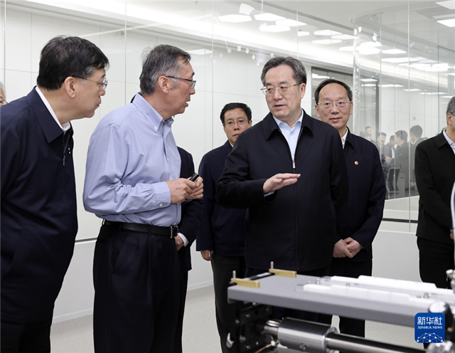 5月7日至9日,中共中央政治局常委、国务院副总理丁薛祥在辽宁大连、沈阳调研,并在沈阳主持召开座谈会。这是5月8日,丁薛祥在沈阳考察辽宁材料实验室,了解新型研发机构体制机制创新等情况。新华社记者 刘卫兵 摄