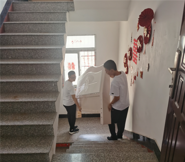 郑礼亮与棚改干部张晨一起帮助棚改户腾房搬家