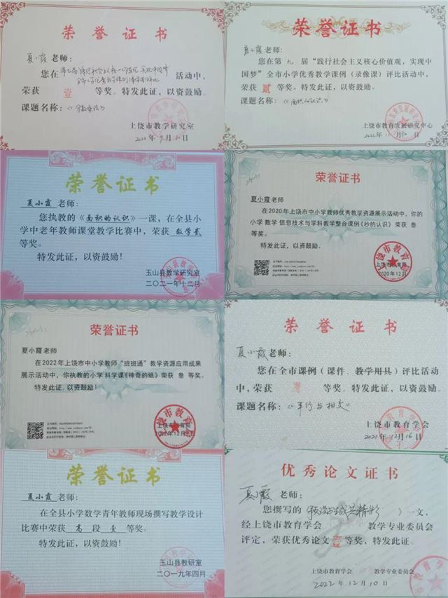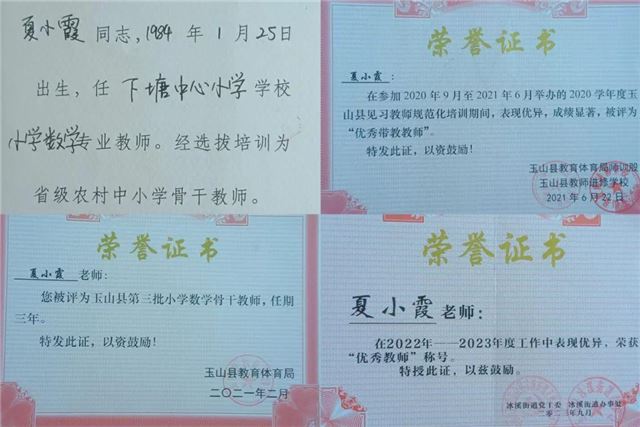 导语:“不忘初心担使命 春风化雨育英才”,为进一步涵养师德师风,弘扬教育正能量,发挥身边榜样示范引领作用,全面展示冰溪小学教师团队为党育人、为国育才,笃学力行、强教有我生动事迹,在第40个教师节即将到来之际,玉山县冰溪小学党支部启动身边优秀教师宣传工作,今天走近优秀教师——夏小霞老师。