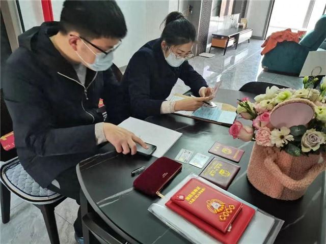 “一件事”专窗工作人员到群众家中办理“新生儿出生一件事”