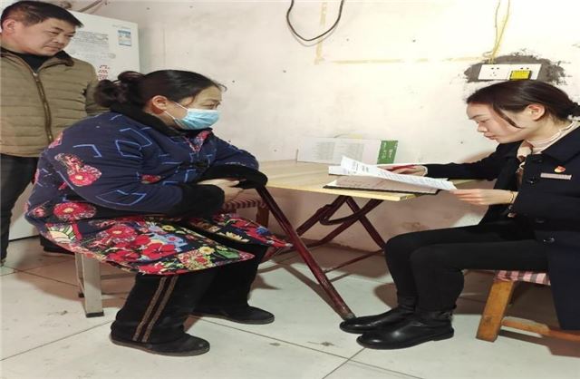 信访窗口工作人员到下圩居委会诉求群众家中了解申请家庭补助问题