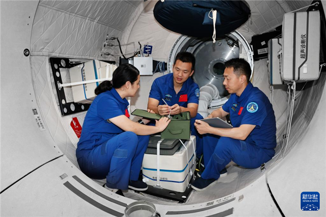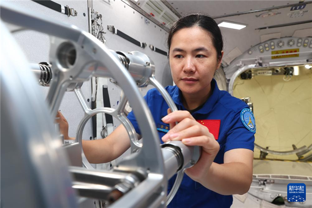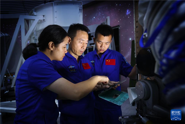 神舟十九号航天员乘组进行舱外航天服维护操作训练(2024年6月21日摄)。新华社发(徐部摄)