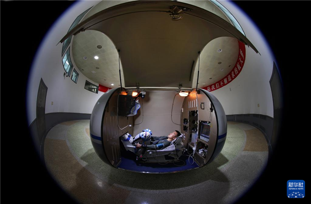 神舟十九号航天员蔡旭哲进行人船合练(2024年1月31日摄)。新华社发(徐部摄)