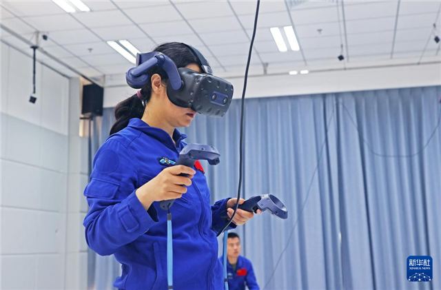 神舟十九号航天员王浩泽进行虚拟现实出舱训练(2024年5月14日摄)。新华社发(徐部摄)
