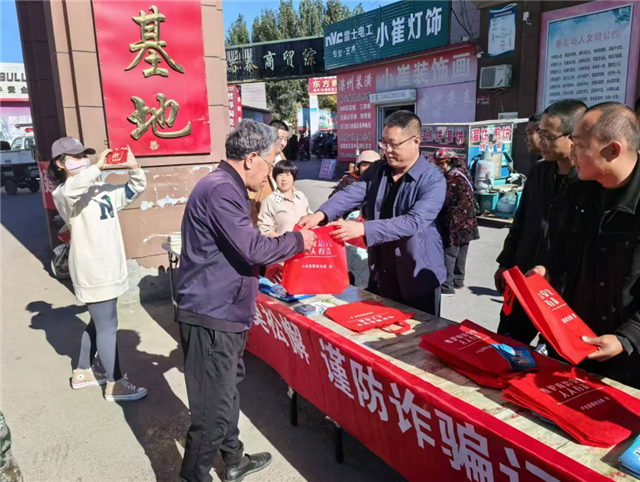 活动过程中,工作人员通过利用集市发放宣传资料、现场讲解等方式,向广大居民宣传和讲解如何防范电信网络诈骗等,结合发生在县内的电信诈骗案例,提醒广大居民,不断学习反诈防诈知识,提升反诈防诈意识,预防电信诈骗事件的发生。