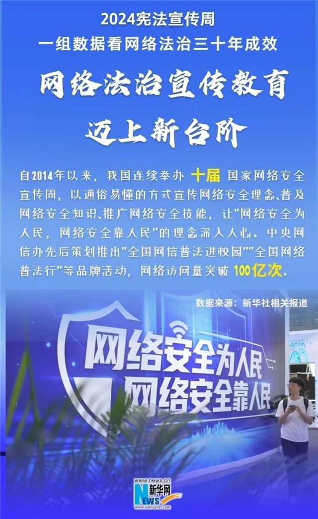 2024年是中国全功能接入国际互联网30周年,也是中国网络法治建设起步30年。正值2024年宪法宣传周,让我们用一组数据带你看我国网络法治建设三十年成效,领略宪法精神如何引领新时代网络法治发展。