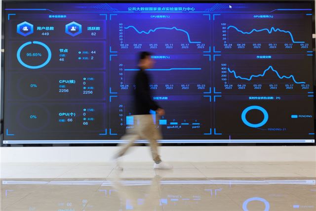 工作人员在贵州大学省部共建公共大数据国家重点实验室算力中心工作(2023年5月23日摄)。新华社记者 刘续 摄