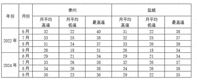 图1、2022年和2024年泰州盐城气温对比表