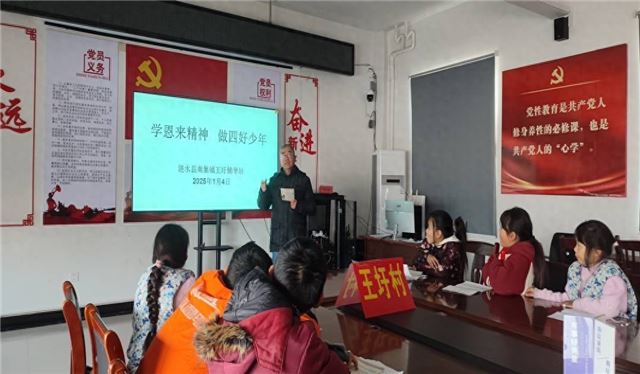 在周恩来总理逝世49周年纪念日即将到来之际,为了引导学生缅怀周恩来丰功伟绩,弘扬周恩来精神,江苏淮安市涟水县南集镇王圩辅导站于2025年1月4日下午举行“学恩来精神 做四好少年”教育活动。