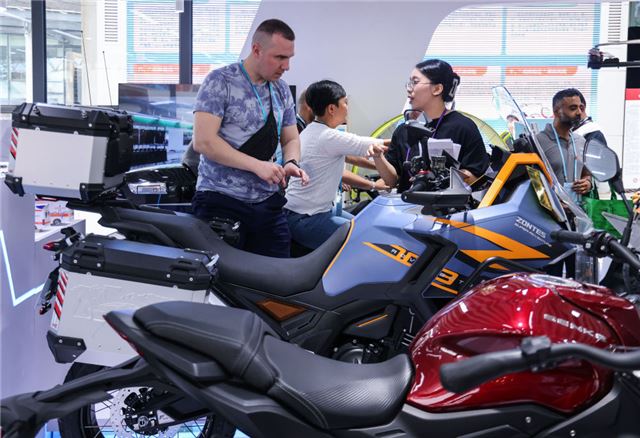 2024年4月15日,采购商在第135届广交会上了解摩托车产品。新华社记者 刘大伟 摄