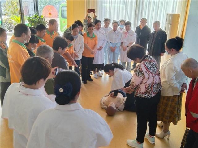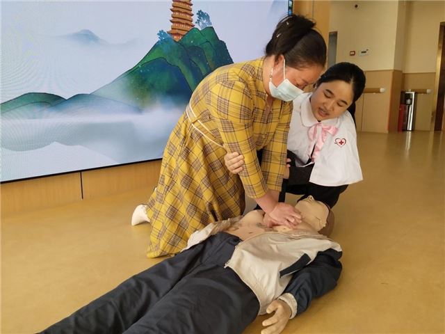 随后志愿者李智琴为福利院的工作人员进行急救知识的科普讲座,通过理论环节让参训人员对心肺复苏的全过程有一定基础的了解。同时对“模拟人”实施心脏复苏抢救操作进行现场演示,并让工作人员进行现场操作。通过此次培训,增强了工作人员的急救意识,有效促进了福利院整体急救水平及应急处理能力。