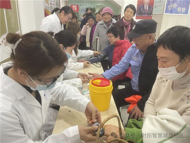 活动中,安之康诊所的李主任开展健康知识普及。她从健康生活方式、疾病预防、公共卫生与环境等多个方面进行普及,妙趣横生的演讲赢得在场听众的阵阵掌声。在之后另一项活动则是护士们为辖区居民进行血压、血糖检测及常见病问诊服务。居民们一次排队,由护士们为他们测量,同时居民们也向她们询问一些健康问题。