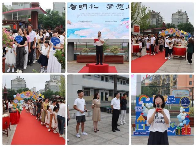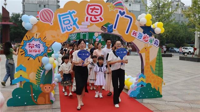 在晨光的照耀下,一年级新生在老师的引领下,满怀期待地穿过“礼仪门”,它寓意着知书达礼,接着穿过了智慧开启的“启智门”,象征着他们正式步入知识的殿堂,开启了人生新阶段的智慧学习之旅,最后穿过“感恩门”,象征着他们要学会知恩感恩,理解父母的养育之恩,师长的教诲之恩,朋友的帮助之恩等。