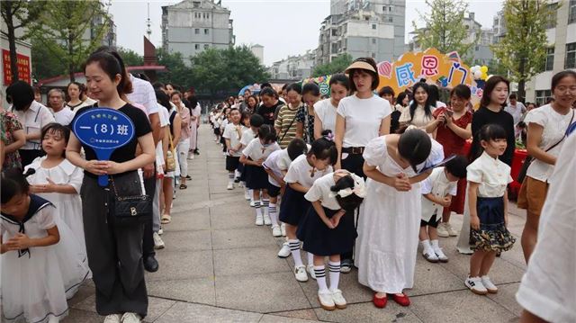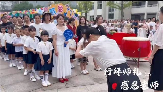 “不学礼,无以立。”尊师重道,是中国人的礼仪传统。冰小学子继承传统,在主持人邱心妮主任的带领下,孩子们向一年级的启蒙老师们行“三拜三兴”礼。简短的拜师礼,让自强不息、尊师尚学的情怀在孩子们心中蔓延开来。