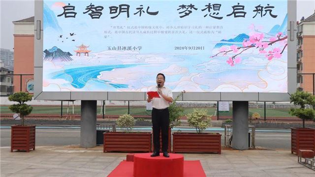 “开笔礼”是中国古代人生四大礼之一,是对儿童开始识字习礼的一种启蒙教育形式,俗称“破蒙”。仪式分为击鼓明志、正衣冠、拜师礼、朱砂启智、经典润心、开笔启蒙等环节进行,激励孩子们爱国爱家、勤奋学习、尊师孝亲。为坚定我们的文化自信,传承优秀的中华文化,2024年9月20日上午8:00,玉山县冰溪小学在学校小广场开展“启智明礼 梦想启航”暨2024年秋季一年级新生入学“开笔礼”活动。