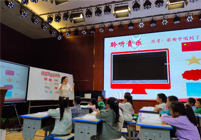 潘丽庆老师执教的《国旗国旗真美丽》她的语言优美,仪表大方,课堂上设计了丰富多样性的环节,引导学生积极参与到音乐实践中,学生在实践中感受音乐、表现音乐,是一节很完整的音乐课。