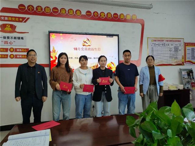 活动中,给10月份入党的党员过政治生日。乐美龙书记和周小珍同志为他们发放政治生日贺卡。