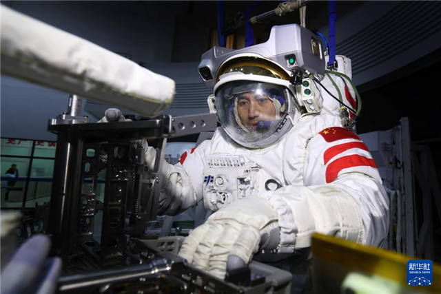 2023年11月30日,神舟十八号航天员叶光富在进行出舱活动训练。新华社发(徐部 摄)