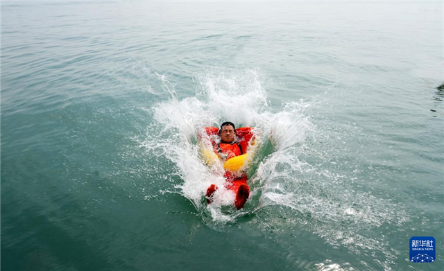 2023年6月28日,神舟十八号航天员李广苏参加海上救生与生存训练。新华社发(孔方舟 摄)