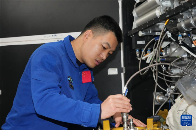 2023年12月22日,神舟十八号航天员李广苏在进行环控生保设备操作训练。新华社发(孔方舟 摄)