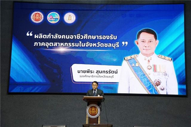 春武里府行政机构主席威塔亚·坤本先生强调了府级行政组织在泰国EEC东部经济走廊发展职业教育人才中的作用,确保教育经费落到实处,做好教育机构与企业需求的沟通桥梁。