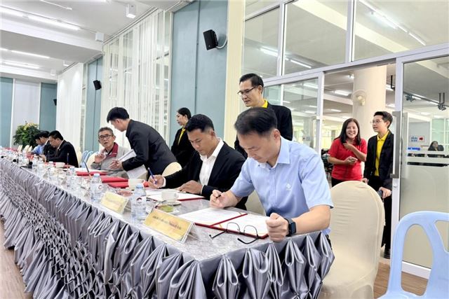 8月30日上午,兴达泰国公司总经理王庭良、驻泰人力资源部长缪毅欣受邀参加了由泰国春武里技术学院在校会议厅组织举办的校企合作协议签订大会,学院邀请了EEC东部经济走廊地区即春武里府、罗勇府和北柳府三府的32家知名企业参会。