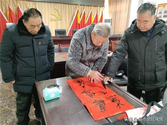 当日由涡阳县政协、老年协会、太上书艺文化中心、县日行一善协会等单位联合开展的送温暖写春联进社区活动,正在该街道涡北社区火热进行中。现场10多名志愿者泼墨挥毫,手书对联,吸引了百余名居民前来观看。不到半天功夫,带着墨香的200多套600余幅春联,被分批次送到环卫工人、脱贫户和居民手中,同时还对街道脱18户贫户送去慰问品。