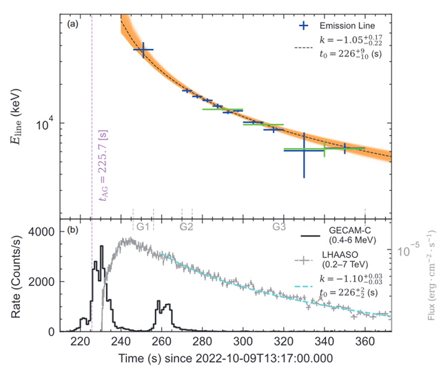 GRB 221009A的谱线能量随时间以幂律演化。(中国科学院高能物理研究所供图)