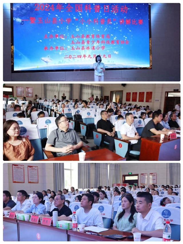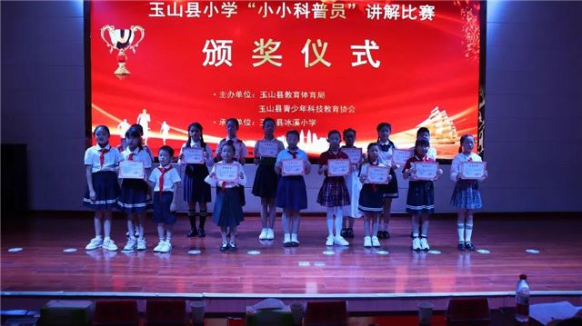 为深入贯彻落实我县科学教育加法,进一步由点及面做好科学知识普及,有力推动科普资源助推“双减”,切实增强我县⻘少年科学兴趣和科学素养 ,9月19日上午,全县小学生“小小科普员”讲解大赛在玉山县冰溪小学多媒体报告厅隆重举行。本次活动由玉山县教育体育局、玉山县青少年科技教育协会主办,由玉山县冰溪小学承办。