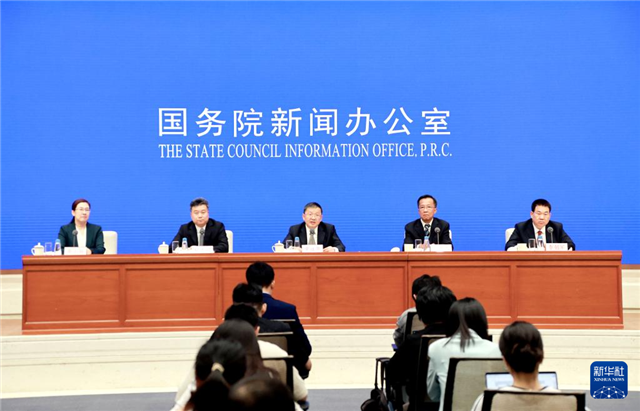 6月20日,国务院新闻办公室在北京举行“推动高质量发展”系列主题新闻发布会,国家能源局局长章建华、国家能源局发展规划司司长李福龙、国家能源局电力司司长杜忠明、国家能源局新能源和可再生能源司司长李创军介绍情况,并答记者问。新华社记者 潘旭 摄