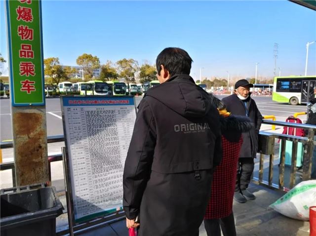 春节又脚步近了,在江苏兴化客运站农村公交乘车区,几块醒目的公交线路牌设置在登车口,几位旅客正围拢在线路牌前细致地查看着。