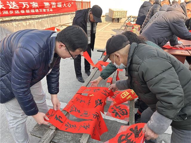 福赠春联祈平安,奋笔挥毫迎新春。新春佳节将至,为传承和弘扬中华优秀传统文化,营造欢乐温馨、喜庆祥和的新春文化氛围。1月17日,林湖乡特邀兴化市青年书法家们,开展了2025年“春联送万家,墨香暖人心” 送春联福进万家公益活动,为老百姓送上一份富含满满传统文化的年味“礼包”,将新春祝福送到千家万户。