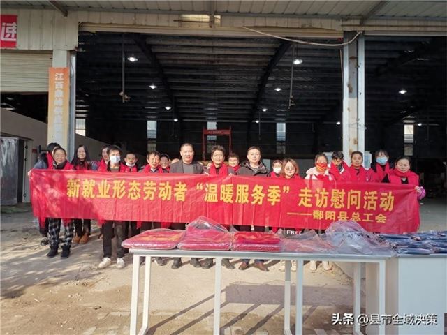 为切实把党和政府的关怀、工会组织的温暖送到新就业形态劳动者的心坎上,近日,鄱阳县总工会开展“新就业形态劳动者温暖服务季”送温暖关爱活动。县总工会副主席喻华亮、胡少华参加活动。