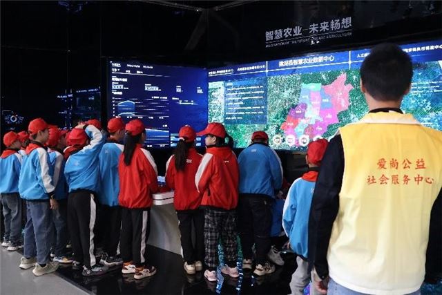 智慧农业中心的建筑造型以“粮仓”为灵感,寓意“风调雨顺、五谷丰登”,活动现场,讲解员向小朋友们介绍了中心的主要功能定位:农业科普基地、智慧农业指挥中心、农文旅融合发展示范点。