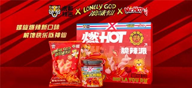 此次联名款浪味仙薯卷延续经典螺旋造型,包装采用辣椒红配色,经典 IP “仙仙”也换上虎皮装,视觉呈现还原度高且趣味十足。口味上,在保持浪味仙经典酥脆口感的基础上,融入虎邦用魔鬼椒和牛肉慢火熬制的特辣口味,带来全新辣味冲击。此外,双方还联合推出 “脆辣派” 礼盒,为消费者提供丰富选择。