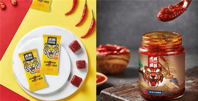 虎邦辣酱作为年轻品牌,以独特口感、创新设计和精准营销策略,在辣酱市场迅速崛起。在原料使用上,采用鲁西牛肉搭配精选辣椒和多种香料,经长时间熬制发酵,辣度适中,醇厚香辣;规格是方便携带的小包装,以满足外卖场景需求;同时,通过与知名食品餐饮品牌、明星合作代言及参与热映电影宣发等方式,提升品牌价值。