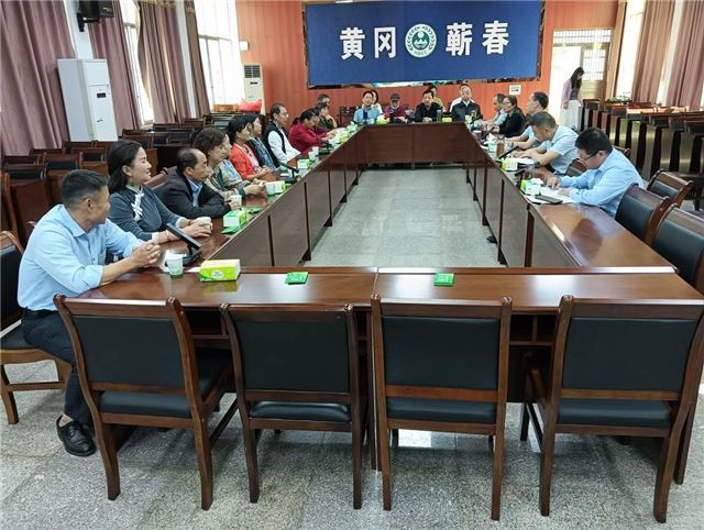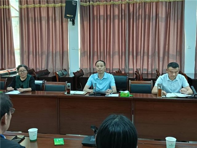 蕲春县生态环保分局党组书记、局长何水长向局系统退休老干部汇报一年来的生态环境工作。