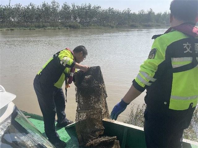 10月23日,江苏淮安市淮阴区交通执法大队联合淮阴区港航事业发展中心对淮沭河水域开展水域通航环境整治行动。针对通航水域非法设置"鱼网""地笼"等捕鱼工具,有碍通航障碍物作为重点整治目标,发现上述违法违规行为,首次进行警告并收缴非法设置的捕鱼工具。整治行动中收缴非法设置的"地笼"19个、"鱼网"10个、清除碍航障碍物1处,口头警告5人。通过整治打击了在通航水域非法设置的碍航违法违规行为,为船舶安全航行提供了保障,有效地防止和减少发生水上交通事故的发生。
