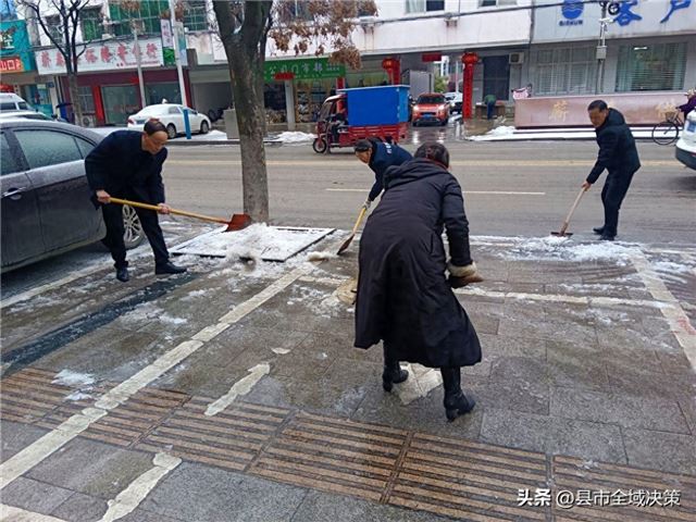 连续的雨雪天气给广大市民出行带来不便。2月23日一大早,湖北蕲春县生态环境分局40多名党员干部职工,在齐昌大道上忙铲冰除雪,为市民营造一个安全、通畅的出行环境。