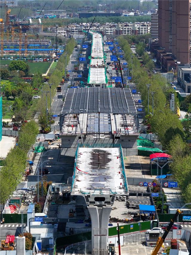 南京至马鞍山市域(郊)铁路全长约54.23公里,共设站16座。项目建成后,两市中心城区仅需30分钟即可互通互达。这是2024年4月9日在南京拍摄的该铁路工程项目建设现场(无人机照片)。
