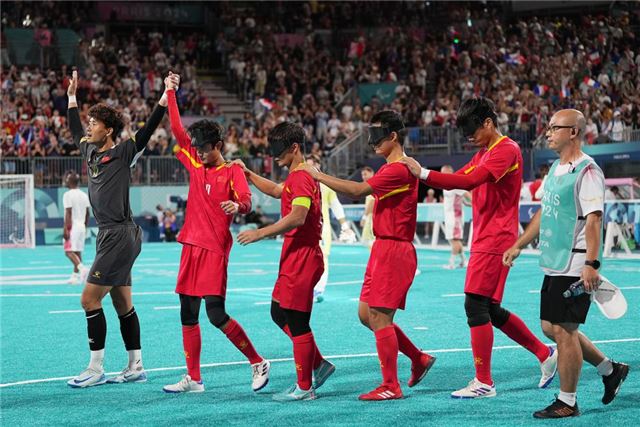 搜索结果显示 9月1日当天 巴黎的日落时间是晚上8点31分 逐渐沉入地平线的太阳 会在这段时间 为这座浪漫之都镶上一层“玫瑰金” 被镶上金色的 有标志性的埃菲尔铁塔 还有塔下战神广场上的一个赛场 几乎与日落同期 9月1日晚上8点30分 在巴黎入夜前最美的时间段里 一场巴黎残奥会盲人足球小组赛 在中国队与法国队之间展开 “你们是这个星球上最优秀的残疾人选手” 在不久前举办的巴黎残奥会开幕式上 巴黎奥组委主席埃斯坦盖在致辞中说道 “你们激励了我们 我们需要用行动来证明这一点 所以就像你们一样 我们也决定毫无保留 我们的心 我们的灵魂 还有法兰西的精华所在 像你们的成就一样不可思议的氛围 和令人惊叹的场馆” 如埃斯坦盖所说 战神广场上这个临时性的赛场 是这些场馆中的代表作 在巴黎奥运会期间 它曾作为沙滩排球的比赛场地 热烈的加油氛围与声光电结合的观赛效果 将比赛变成铁塔下的一场派对 但在巴黎残奥会上 这个场馆多数时间是寂静的 工作人员甚至需要高举指示牌 上边写着法语的“嘘” 作为盲人体育项目中凤毛麟角的对抗性项目 盲人足球需要球员们戴上眼罩 依靠内置响铃的足球 以及场外引导员的声音 进行比赛 在欢呼声中 选手们搭着前方队员的身体 由健全人担任的门将引导进入赛场 而当比赛开始后 全场回归寂静 足球滚动的响声清晰可闻 而当一次精彩的进攻或防守结束 全场才会爆发出压抑后的喝彩 寂静之中 还经常夹杂着一声声低声的惊呼 在眼前的漆黑中比赛 很难有“收力”的预判 选手们常常在高速行进中撞在一起 两个人同时倒地 但又很快起身 继续投入战斗 “我们刚参与盲人足球的时候 是慢慢地才能奔跑起来 慢慢地才能做带球的一些动作 现在对于我们来说 在场上奔跑 进攻防守 是一件很自如的事情 当然比赛过程中难免有一些冲撞 对我们来说也习以为常” 中国盲人足球队运动员俞裕锬对记者说 35岁的俞裕锬 在巴黎已是第四次参加残奥会 2006年中国正式成立盲人足球集训队时 他就是其中的选手 在北京残奥会上 这支队伍夺得银牌 目前两获世锦赛季军 七夺亚锦赛冠军 在不为人知的地方 默默强大 参赛经验丰富的俞裕锬 对巴黎依然充满期待 期待突破自我 也因为“听说周围环境很漂亮” 尽管埃菲尔铁塔对他来说 只是一个模糊概念 “他们知道自己在埃菲尔铁塔(旁) 他们也很高兴 希望用心去体会 去享受这样的环境” 引导员李进说 全场比赛 除了足球滚动的声音 便是引导员的声音 李进需要用简短急促的声音 持续告诉球员们距离 射门角度等信息 还要敲击门框 提示球员们球门的位置 暂停的时候 他握着球员的手 在上边画出进攻与防守的阵型 李进说 这次来到巴黎 教练组从来没有给运动员施加压力 因为运动员也都知道自己追求的东西 希望能够打好每一场比赛 能够实现自己的人生价值 能够为国争光 这些运动员都知道 “盲人足球是很纯粹的足球” 刚刚喊了整场的他 声音有些嘶哑 当晚的比赛 法国队在门前突施冷箭 取得了1:0的领先 中国队全力反攻 取得了多次射门机会 但最终均与进球差之毫厘 张家彬还在进攻中被重重撞倒 为球队争取到一个点球 谈到当时的感受 张家彬说 “当时只想 要进球 要往前冲” “我觉得全场我们的优势都在那 只不过我们把握机会的能力需要更强一些” 俞裕锬说 盲人足球能够放在这个场地是件好事 “这对于我们来说是最高的一个表现舞台 希望在比赛中尽情去发挥” 对于这支队伍的许多人来说 这片场地是需要用心灵去感受的风景 但在更多人对这片风景的记忆中 从此有了一群盲人足球运动员拼搏的身影 记者:郑直、周万鹏、刘旸 编辑:王楚捷、郁思辉