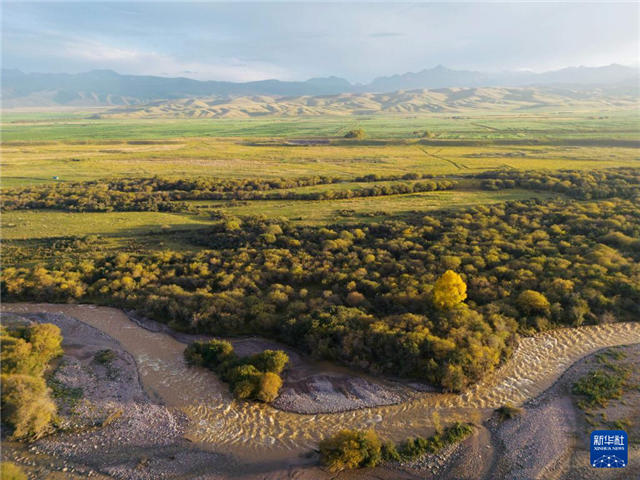9月22日拍摄的甘肃省张掖市肃南裕固族自治县夏日塔拉草原秋色(无人机照片)。