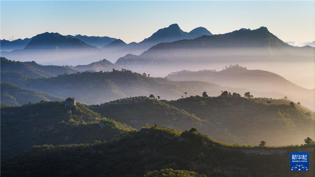 9月23日在河北省遵化市小厂乡拍摄的古长城晨景(无人机照片)。