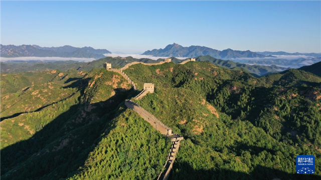 9月23日清晨在河北省承德市滦平县拍摄的金山岭长城景观(无人机照片)。