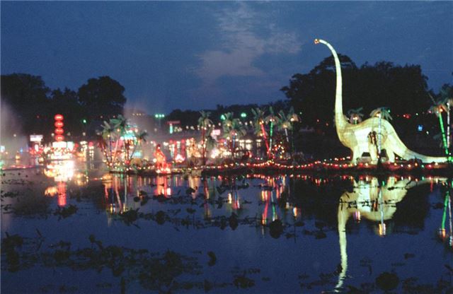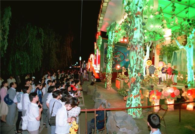 1988年6月5日在“北海龙灯会”上拍摄的“恐龙”灯组。新华社记者 张树源 摄